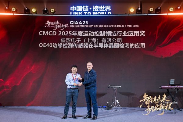 在近期落幕的“智鏈未來?韌啟新程”CIA A25 中國運動控制/直驅(qū)產(chǎn)業(yè)發(fā)展高峰論壇暨頒獎盛典(深圳站)上,堡盟電子(上海)有限公司憑借OE40邊緣檢測傳感器在半導體晶圓檢測的應(yīng)用,成功摘得CMCD 2025年...